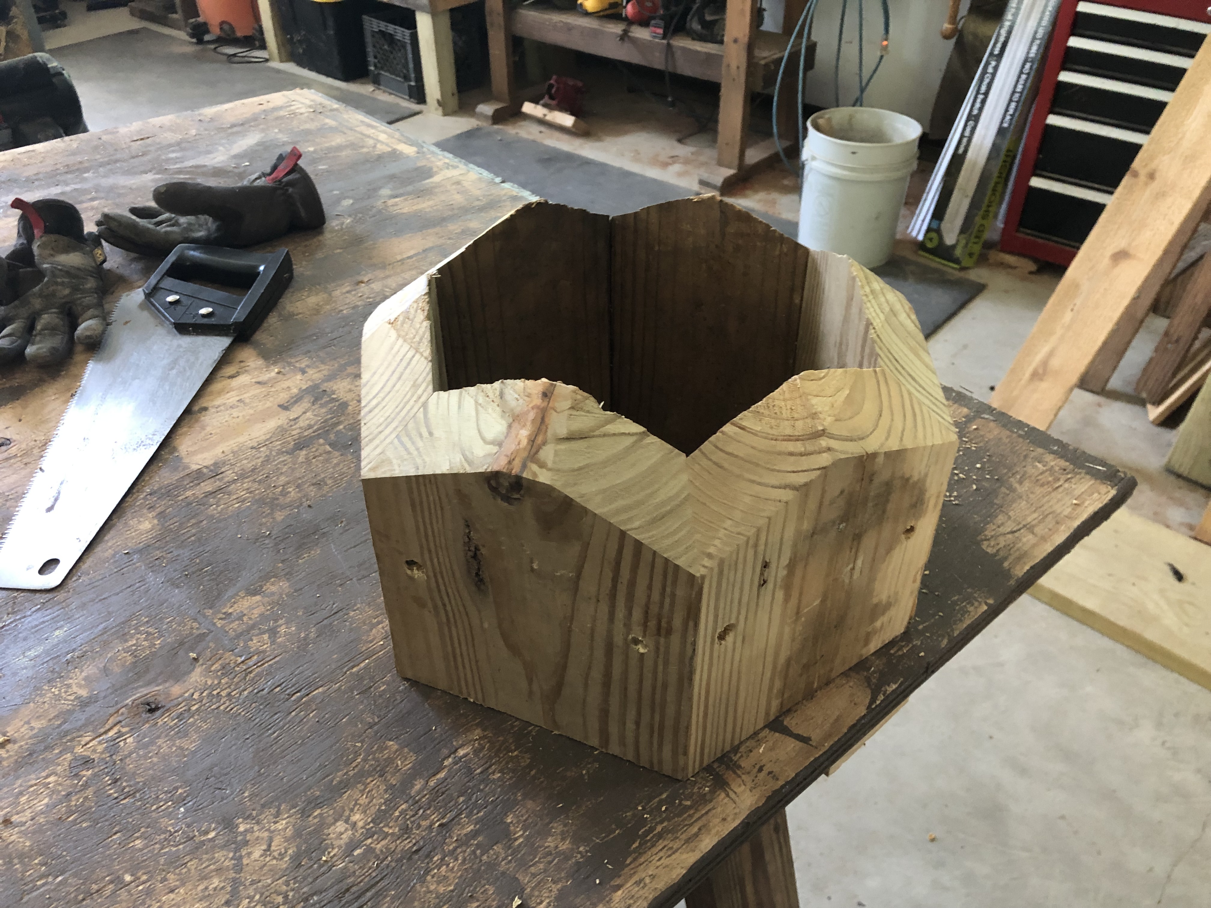 The plan in the Instructionals website had a solid block with six sides cut into it. There are a number of advantages going with this type of block: