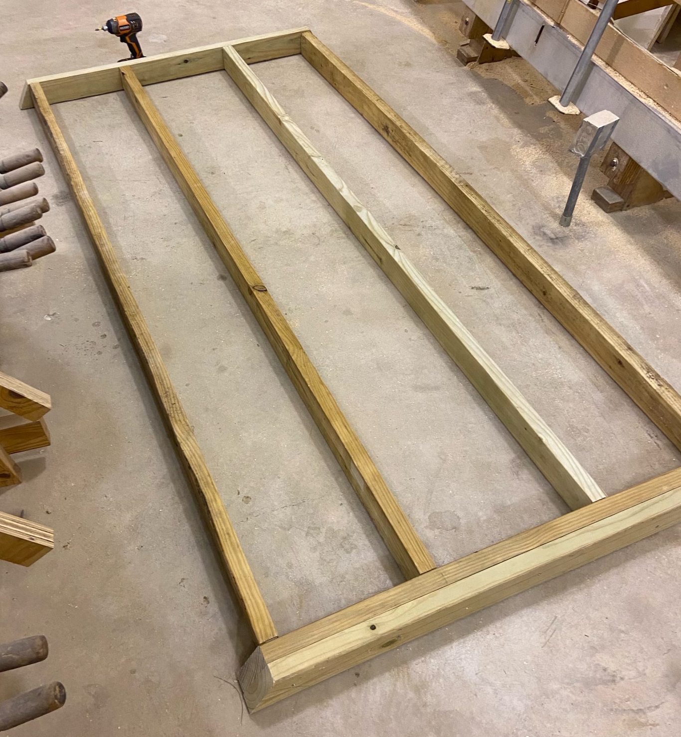 | This is the base of the shed, the lowest level that will be sitting on blocks on the ground.